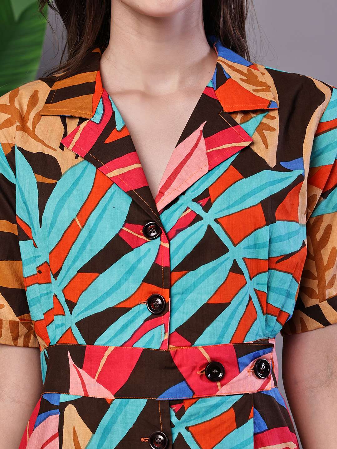 Level up your style with this trend-setting dress. Its vibrant abstract print and distinctive high-low handkerchief hemline create an eye-catching look. The tie-up shoulder straps ensure a comfortable and adjustable fit. Whether for daytime casual events or evening gatherings, this dress is the perfect choice for effortless flair.